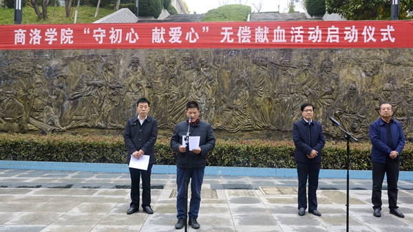 為深化“不忘初心、牢記使命”主題教育,號召廣大師生以實際行動助力公益事業(yè),11月6日到8日,我校與商洛市中心血站聯(lián)合舉辦“守初心 獻愛心”無償獻血活動。校長范新會,商洛市中心血站站長袁觀成出席活動啟動儀式并講話,校黨委副書記彭虎軍主持啟動儀式。市中心血站副站長張延倉,我校各職能部門負責(zé)人、各二級學(xué)院黨政負責(zé)人、師生代表,中心血站工作人員參加活動啟動儀式。