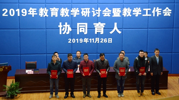 大會對我校2019年度優(yōu)秀教案、優(yōu)秀電子課件及實習(xí)優(yōu)秀指導(dǎo)教師、2019屆校級優(yōu)秀畢業(yè)論文指導(dǎo)教師、第五屆“互聯(lián)網(wǎng)+”大學(xué)生創(chuàng)新創(chuàng)業(yè)省賽獲獎項目指導(dǎo)教師、2019年度青年教師教學(xué)技能競賽獲獎教師、2019年教育教學(xué)研討會優(yōu)秀論文及優(yōu)秀組織單位進行了表彰,在熱烈的掌聲中,出席大會的校領(lǐng)導(dǎo)為受表彰的集體和教師代表頒發(fā)了獲獎證書并進行了授牌。獲獎教師代表、生物醫(yī)藥與食品工程學(xué)院張亦琳博士作了發(fā)言。