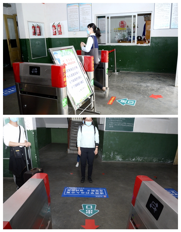 整場(chǎng)演練嚴(yán)格按照學(xué)校春季開(kāi)學(xué)及疫情防控工作方案進(jìn)行,秩序井然、嚴(yán)謹(jǐn)細(xì)致。在教室演練現(xiàn)場(chǎng),臺(tái)階上紅色的路線標(biāo)識(shí)清晰醒目,學(xué)生在班級(jí)聯(lián)絡(luò)教師統(tǒng)一帶隊(duì)下,佩戴口罩、進(jìn)行手部消毒后按指定路線經(jīng)測(cè)溫門(mén)進(jìn)入教學(xué)樓;6號(hào)公寓樓西門(mén)口,學(xué)生持一卡通,經(jīng)工作人員體溫槍測(cè)溫后,間隔1.5米有序進(jìn)入公寓;食堂外,就餐人員需在新設(shè)置的洗手池進(jìn)行“七步洗手”,經(jīng)工作人員測(cè)溫、手部消毒后進(jìn)入指定食堂,間隔取餐后,按桌面標(biāo)識(shí)提示面南而坐,落座就餐,就餐完畢隨即戴上口罩,將餐具送至收餐處,并按指定出口出門(mén)。