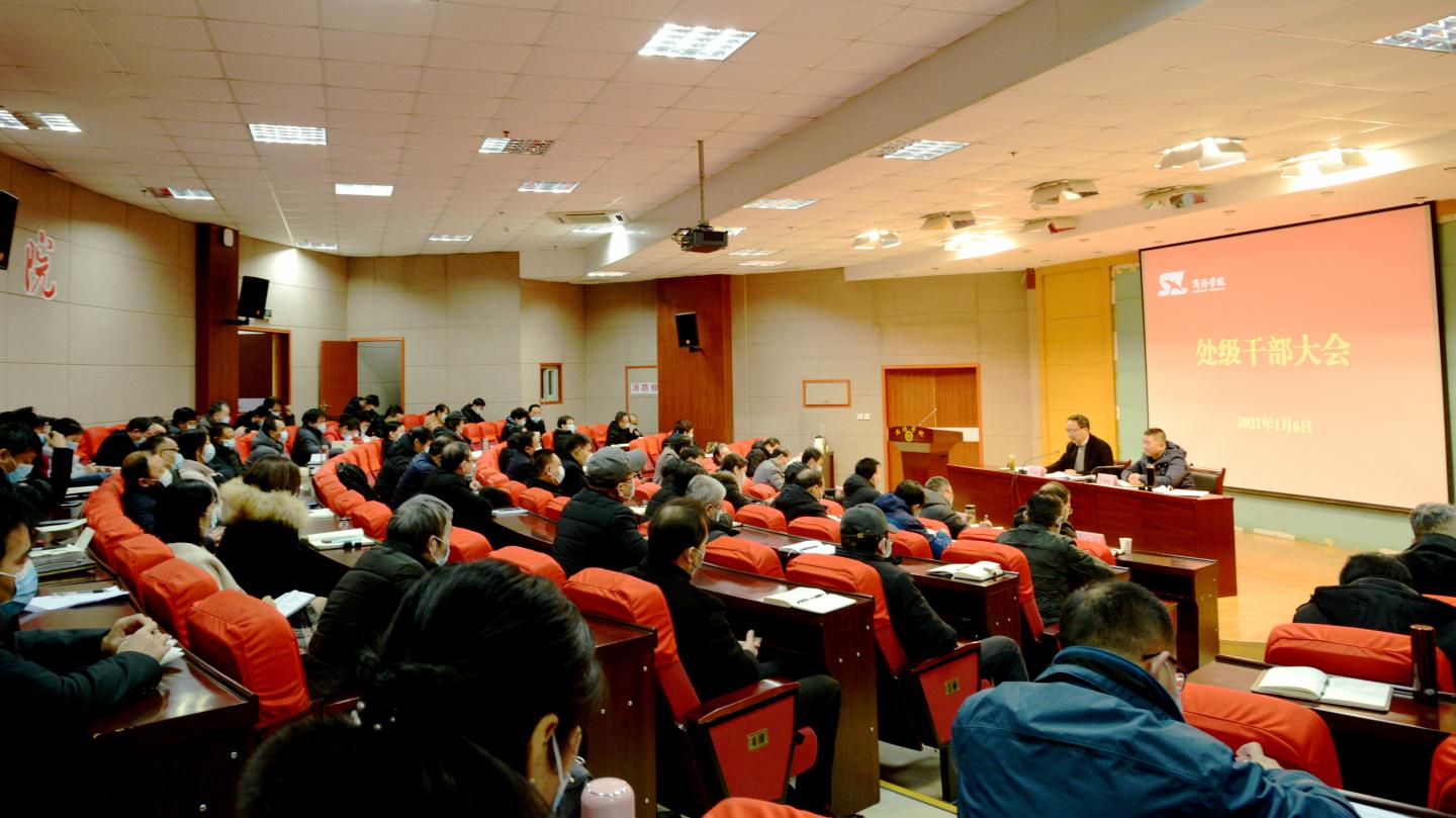 1月6日下午,我校召開本學(xué)期期末處級干部大會,總結(jié)2020年工作,謀劃安排2021年工作。校領(lǐng)導(dǎo)龍治剛、范新會、彭虎軍、劉勇、劉寶盈、王新軍出席會議,全體處級干部共計80余人參加會議。