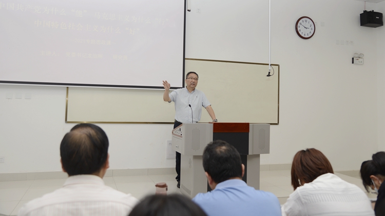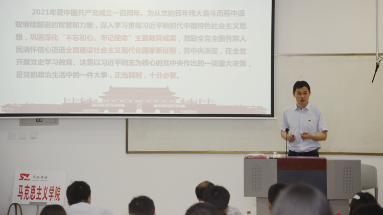 校領導彭虎軍、劉勇、王新軍、郭瑾在講授中,帶領同學們重溫了習近平總書記在黨史學習教育動員大會上的重要講話精神,闡明“學史明理、學史增信、學史崇德、學史力行” 的目標要求,從“深入學習領會習近平總書記關于黨史的重要論述、充分認識開展黨史學習教育的重大意義;認真研讀黨史基本著作、全面了解中國共產黨百年輝煌;深刻把握黨史學習教育的重點;學懂弄通做實習近平新時代中國特色社會主義思想,增強‘四個意識’、堅定‘四個自信’、做到‘兩個維護’”等四個方面作了深入淺出的講解。引導同學們把學黨史和悟思想貫通起來,自覺以習近平新時代中國特色社會主義思想特別是習近平總書記關于黨史的重要論述為根本遵循,樹立正確黨史觀,準確把握黨的歷史發(fā)展的主題主線、主流本質,理清黨史重大事件、重要會議、重要人物,深刻理解“中國共產黨為什么能、馬克思主義為什么行、中國特色社會主義為什么好”,樹立正確的世界觀、人生觀和價值觀,把實現(xiàn)個人價值、奮斗目標、人生理想和國家的前途命運結合起來,堅定理想信念,立大志、明大德、成大才、擔大任,努力成為堪當民族復興重任的時代新人。