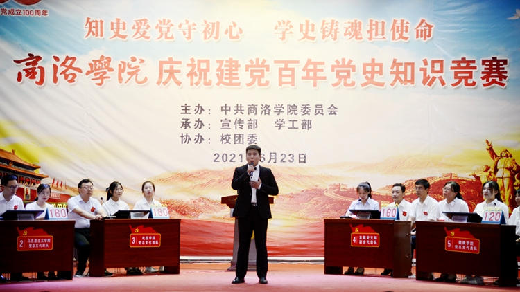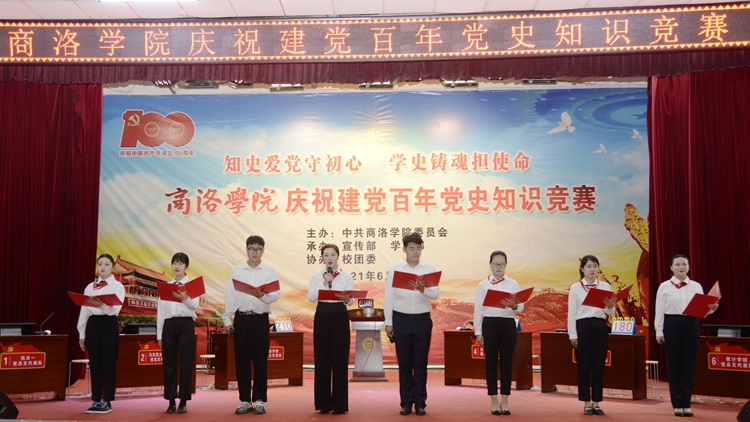 6月23日下午,我校舉辦慶祝建黨百年黨史知識競賽團體比賽決賽,6支代表隊進行了緊張激烈的角逐。校長范新會、黨委副書記彭虎軍,副校長王新軍、郭瑾觀看比賽并為獲獎集體和個人頒獎。校黨委委員,黨委工作部門負責人,各黨總支、直屬黨支部書記,各二級學院院長和師生代表400余人觀看了比賽。這標志著我校慶祝建黨百年黨史知識競賽圓滿落下帷幕。