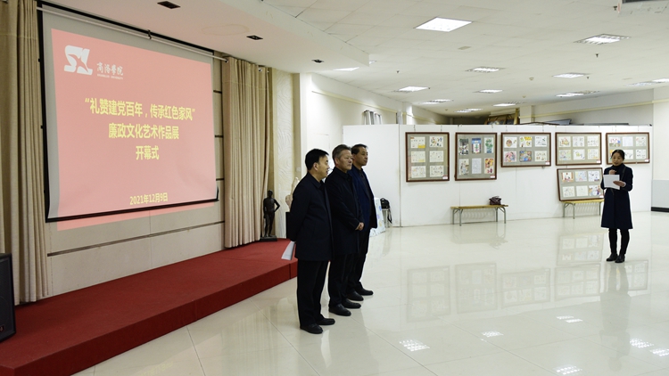 12月9日上午,由校紀(jì)委主辦、藝術(shù)學(xué)院承辦的“禮贊建黨百年,傳承紅色家風(fēng)”廉政文化藝術(shù)作品展在北新街校區(qū)圖書館五樓藝術(shù)展廳開幕。校黨委書記張志昌,黨委副書記彭虎軍,副校長王新軍、劉寶盈出席開幕式并參觀作品展。各職能部門負(fù)責(zé)人、二級學(xué)院(部)黨政負(fù)責(zé)人以及藝術(shù)學(xué)院師生代表參加了開幕式。開幕式由紀(jì)委副書記田小莉主持。