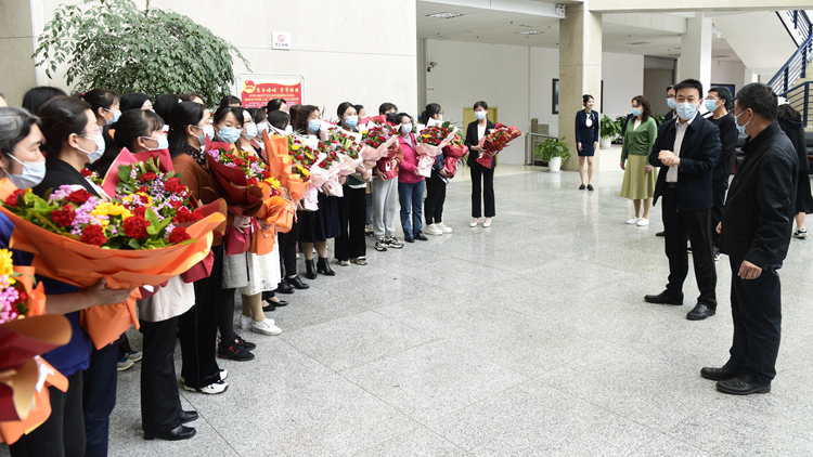 上午,張志昌與陜西省五一巾幗標(biāo)兵曹寶月,陜西省教科文衛(wèi)體系統(tǒng)五一巾幗標(biāo)兵王曉霞、楊艷進行座談,為她們頒發(fā)榮譽證書并送上鮮花。張志昌指出,新時代女性地位作用日益提升,我校在改革發(fā)展中也涌現(xiàn)了一大批優(yōu)秀女職工。希望大家堅守初心、破浪前行,發(fā)揮示范引領(lǐng)作用,樹立柔肩擔(dān)重任的巾幗英雄形象。工會也要發(fā)揮好“娘家人”的作用,加大對女教職工的扶持力度,為大家營造一個舒適的工作環(huán)境。