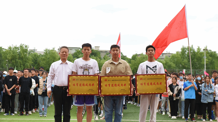 在期待的眼光和熱烈的掌聲中,張志昌為獲得體育道德風(fēng)尚獎(jiǎng)的學(xué)院頒獎(jiǎng),范新會(huì)為團(tuán)體總分前三名獲獎(jiǎng)學(xué)院頒獎(jiǎng),彭虎軍、劉勇分別為女子團(tuán)體前三名獲獎(jiǎng)學(xué)院和男子團(tuán)體前三名獲獎(jiǎng)學(xué)院頒獎(jiǎng)。