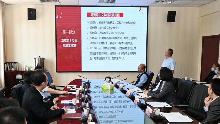根據(jù)陜西省委宣傳部、省委教育工委相關要求,我校積極申報建設陜西省第二批重點馬克思主義學院培育單位。5月19日上午,在省委宣傳部二級巡視員可小鬧的帶領下,由西安交通大學馬克思主義學院院長燕連福任組長,長安大學馬克思主義學院院長陳懷平、西安理工大學馬克思主義學院院長梁嚴冰為成員的專家組來到我校,實地檢查評估重點馬克思主義學院培育單位建設情況。校黨委書記張志昌出席評審匯報會并致辭。黨委副書記彭虎軍主持匯報會。