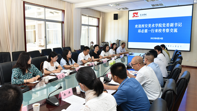 為深入貫徹落實(shí)習(xí)近平總書(shū)記關(guān)于思政課建設(shè)重要論述,落實(shí)省委高教工委、省教育廳建立重點(diǎn)馬克思主義學(xué)院對(duì)口幫扶普通馬克思主義學(xué)院機(jī)制的要求,扎實(shí)推動(dòng)思政課內(nèi)涵式高質(zhì)量發(fā)展建設(shè),6月14日,西安美術(shù)學(xué)院黨委副書(shū)記邱必震一行來(lái)??疾旖涣?。校黨委書(shū)記張志昌,黨委副書(shū)記彭虎軍出席座談會(huì)。我校馬克思主義學(xué)院與商洛職業(yè)技術(shù)學(xué)院馬克思主義學(xué)院負(fù)責(zé)人及部分教師代表參加座談。