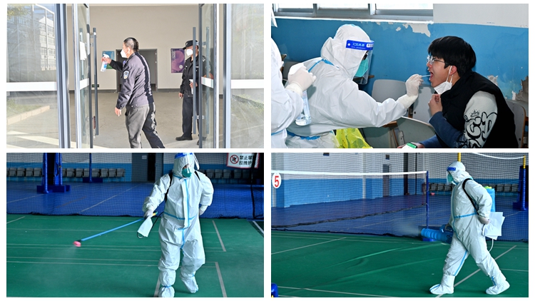 演練以上午學校按要求開展全員核酸檢測,下午16:00,學校疫情防控工作領導小組辦公室接到商州區(qū)防肺辦反饋,有核酸檢測混管異常情況為背景。演練應急響應啟動后,丹江校區(qū)隨機抽取20名學生作為同一“混管”學生,相關工作人員即刻與輔導員取得聯(lián)系,對這20名學生所在區(qū)域進行了精準定位、區(qū)域封控、核酸檢測、“異常患者”轉(zhuǎn)運、密切接觸者隔離、環(huán)境全面消殺、信息上報等重要應急處置環(huán)節(jié)。整個演練環(huán)節(jié)各工作組按既定預案,分工明確,配合到位,有條不紊,20分鐘內(nèi)完成全部演練任務,達到了熟悉流程、發(fā)現(xiàn)問題、完善提高的目的。