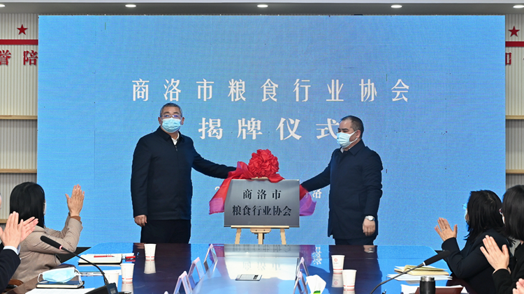 王宇鵬(左)、南瑋琦(右)共同為“商洛市糧食行業(yè)協(xié)會(huì)”揭牌