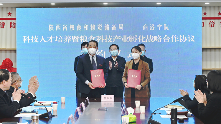 為進(jìn)一步推動(dòng)陜西省糧食產(chǎn)能提升、生產(chǎn)結(jié)構(gòu)優(yōu)化,加快推進(jìn)校地合作共建涉糧科技人才培養(yǎng)體系,促進(jìn)糧食產(chǎn)業(yè)高新技術(shù)成果轉(zhuǎn)化,12月14日上午,陜西省糧食和物資儲(chǔ)備局與我校召開(kāi)校地共建糧食工程專業(yè)座談會(huì)。雙方簽訂了《科技人才培養(yǎng)及糧食科技產(chǎn)業(yè)孵化戰(zhàn)略合作協(xié)議》,為“陜西秦創(chuàng)原(商洛)糧食科技產(chǎn)業(yè)孵化中心”“陜西省糧食和物資儲(chǔ)備局商洛學(xué)院培訓(xùn)基地”“商洛糧食行業(yè)協(xié)會(huì)”掛牌。
