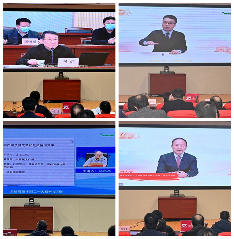 為全面落實習近平總書記關于深入學習宣傳貫徹黨的二十大精神的重要指示精神,2月20日至24日,陜西省委教育工委舉辦了全省高校領導干部暨委廳直屬機關學習貫徹黨的二十大精神專題學習班。省委教育工委書記、省教育廳廳長劉建林出席開班式并作動員講話。我校全體校領導及處級干部參加培訓。