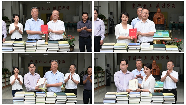 6月28日下午,陜西省地方志辦公室主任熊暉、商洛市人民政府地方志辦公室主任陳朝陽一行代表省、市地方志辦公室向我校捐贈《歷代詠陜詩詞曲集成》《商洛地區(qū)志》等志書、年鑒共89冊(件)。捐贈儀式在我校北新街校區(qū)圖書館舉行。校黨委書記張志昌,副校長王新軍出席儀式。院長辦公室、國內(nèi)合作與校友工作處、圖書館負(fù)責(zé)人,圖書館全體工作人員和學(xué)生代表參加儀式。