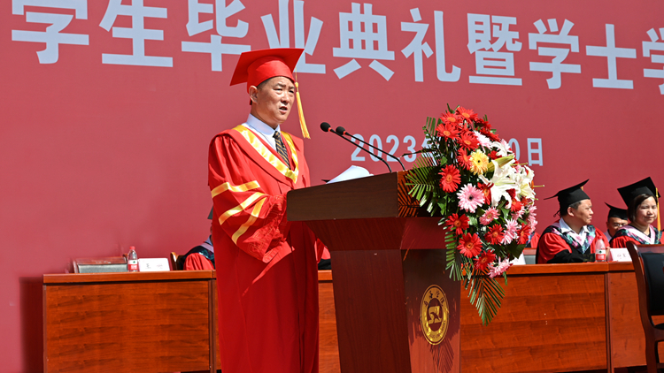 校長范新會以《志存高遠勇毅前行做不負時代的“追夢人”》為題發(fā)表了情真意切的講話。他表示,在四年的大學生活中,同學們謹遵博聞強志、正道直行校訓,正心明志、立德修身,努力學習專業(yè)知識,踴躍投身社會實踐,豐富了知識,鍛煉了體魄,增長了才干。所有同學在砥礪奮進中共同見證了學校在軟科中國大學排名中的新突破,體驗了校園環(huán)境的新提升,結識了中外合作辦學和國際創(chuàng)意課程的新同學,刷新了學?!盎ヂ?lián)網(wǎng)+”大賽的最高成績。他希望全體畢業(yè)生在未來的人生路途中,牢記青年使命、矢志報效祖國,不負韶華、不負時代,用青春之筆書寫人生的華彩篇章。