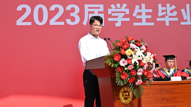 在校生代表、經(jīng)濟管理學院學生劉奕喆代表全體在校生向2023屆畢業(yè)生送上最真摯的祝福,祝愿學長學姐們在新征途上大展宏圖、譜寫華章,此去繁華相送,再遇情誼依舊!