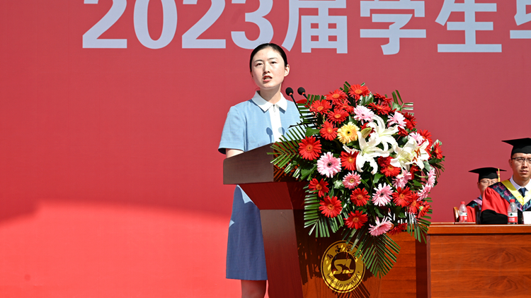 人文學院青年教師劉玉婷作為教師代表發(fā)言。她希望同學們在未來的人生道路上心懷夢想、不忘初心,胸有丘壑、砥礪前行,心中有光、自信自強,跨越畢業(yè)這座里程碑后,敢于攀登人生更高峰。