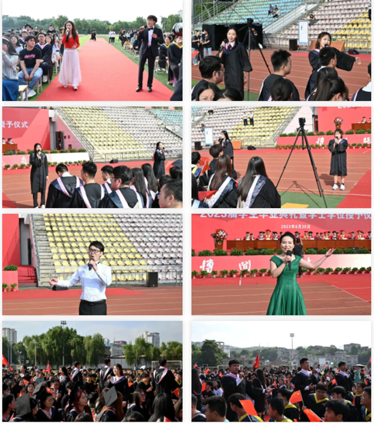 藝術學院教師代表劉志華、學生劉亞洲等14名師生分別在典禮上演唱了《夜空中最亮的星》《鳳凰花開的路口》《春風十萬里》《再一次出發(fā)》《我和我的祖國》等歌曲,深情的歌聲傳達出母校師生對全體畢業(yè)生的殷切祝福以及建設祖國美好未來的無限期待。