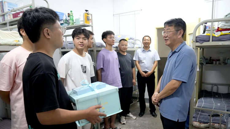 當(dāng)天下午,張志昌在北新街校區(qū)為家庭經(jīng)濟困難新生送去愛心大禮包。他寄語青年學(xué)子,要樹立遠大理想,珍惜光陰、奮力拼搏,不辜負父母、學(xué)校和社會的期望。