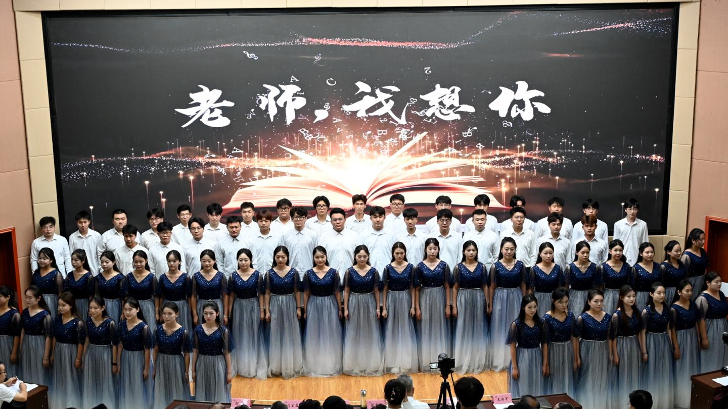 會(huì)前,全體參會(huì)人員一同觀看了教師節(jié)視頻《師者·榮耀》、學(xué)校“春之聲”合唱團(tuán)帶來的合唱《老師,我想你》以及老、中、青三代教師帶來的詩朗誦《商山紅燭》。精彩的節(jié)目讓全體參會(huì)人員重溫了商洛學(xué)院師生櫛風(fēng)沐雨、自強(qiáng)不息的奮斗歷程,堅(jiān)定了在新時(shí)代、新征程上牢記使命、砥礪前行的決心和信心。