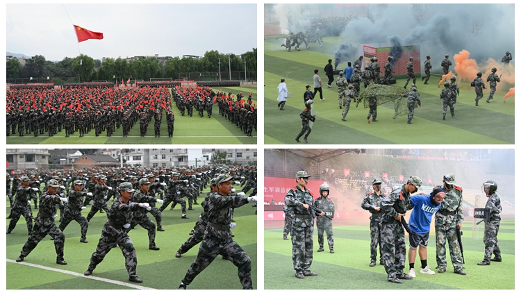 大會(huì)在莊嚴(yán)的升旗儀式中拉開(kāi)帷幕。參訓(xùn)新生進(jìn)行了花樣隊(duì)列、五步拳、匕首操、擒敵拳、反恐演練等5個(gè)匯報(bào)科目展示?;雨?duì)列的同學(xué)們意氣風(fēng)發(fā),以整齊的步伐和獨(dú)特的隊(duì)形變化,展示著商洛學(xué)院的創(chuàng)新精神和團(tuán)隊(duì)合作能力。五步拳陣和匕首操表演整齊利落,英姿颯爽。擒敵拳動(dòng)作連貫,氣勢(shì)如虹、拳拳生風(fēng)。反恐演練模擬了防范和打擊恐怖主義,解救人質(zhì)的場(chǎng)景。同學(xué)們配合默契,訓(xùn)練有素,以精湛的技巧和標(biāo)準(zhǔn)的戰(zhàn)術(shù)動(dòng)作圓滿(mǎn)完成訓(xùn)練科目匯報(bào)展示。