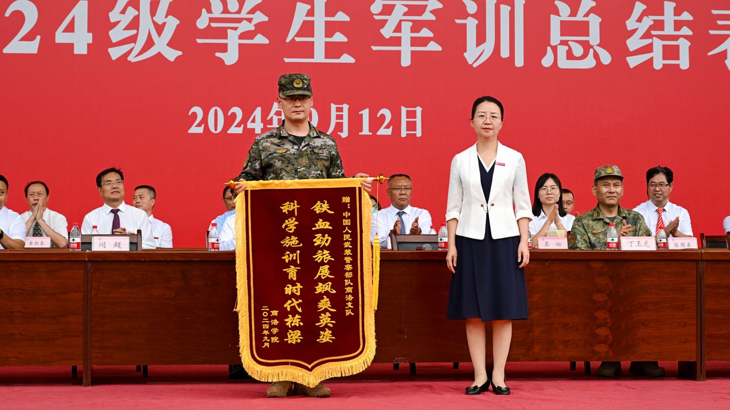 9月12日,商洛學(xué)院舉行2024級(jí)學(xué)生軍訓(xùn)總結(jié)表彰大會(huì),檢閱2024級(jí)學(xué)新生軍訓(xùn)成果,并對(duì)軍訓(xùn)中表現(xiàn)突出的先進(jìn)集體與先進(jìn)個(gè)人進(jìn)行表彰。校黨委書(shū)記張志昌出席大會(huì)并講話(huà)。校長(zhǎng)、黨委副書(shū)記權(quán)雅寧出席大會(huì)并為中國(guó)人民武裝警察部隊(duì)商洛支隊(duì)贈(zèng)送錦旗。商州區(qū)人民武裝部軍事科少??崎L(zhǎng)丁玉龍,中國(guó)人民武裝警察部隊(duì)商洛支隊(duì)少校副參謀長(zhǎng)閔超,校黨委副書(shū)記、紀(jì)委書(shū)記王浩,副校長(zhǎng)王新軍、郭瑾出席大會(huì)。副校長(zhǎng)劉寶盈主持大會(huì)。