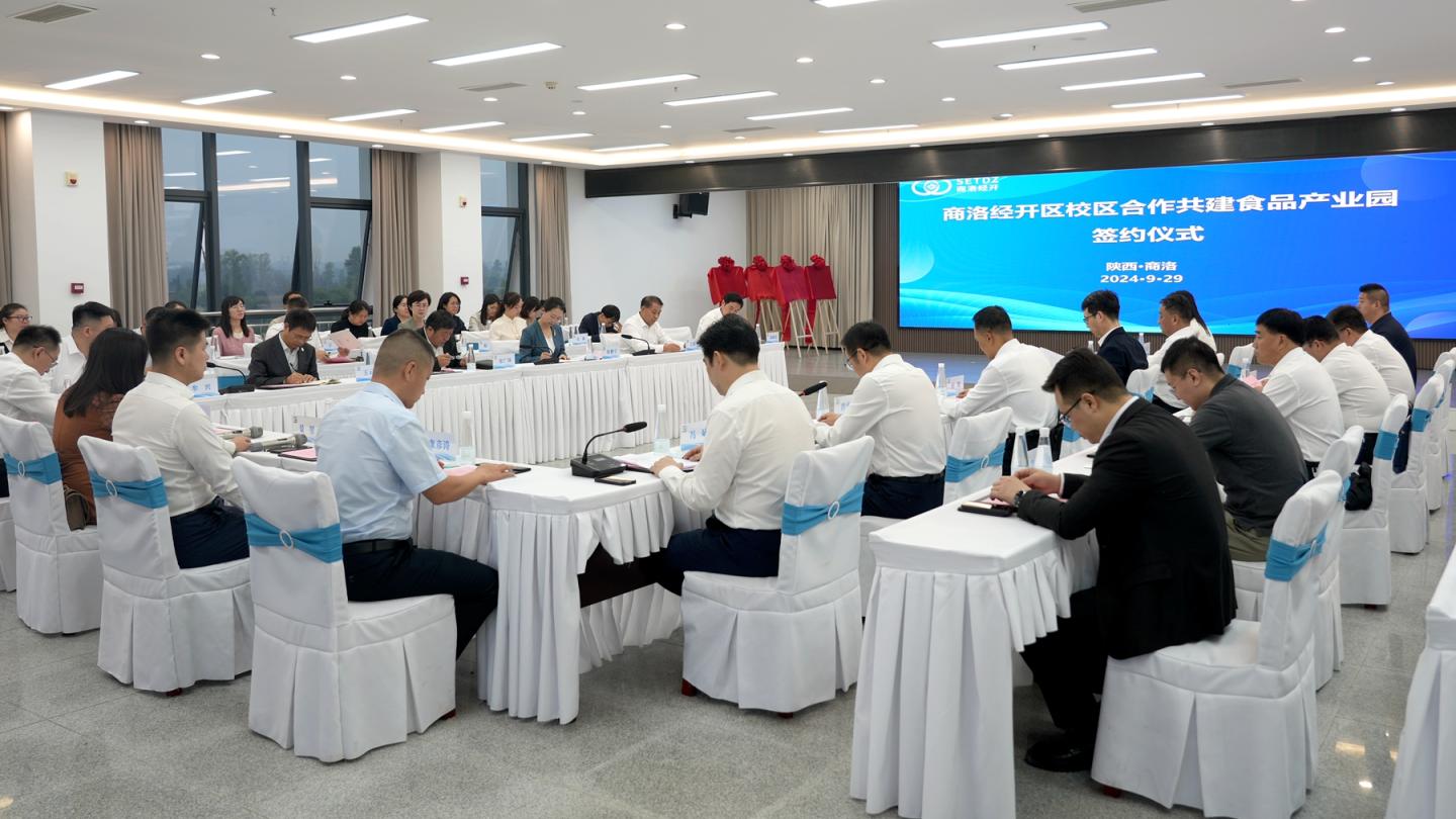 為推動校區(qū)合作和產(chǎn)學(xué)研深度融合,提升商洛經(jīng)濟技術(shù)開發(fā)區(qū)科技創(chuàng)新與經(jīng)濟發(fā)展效能,9月29日,商洛經(jīng)開區(qū)校區(qū)合作共建食品產(chǎn)業(yè)園簽字儀式在商洛市舉行。商洛市委副書記、商洛經(jīng)開區(qū)黨工委書記趙孝,洛南縣委書記楊長江,校長權(quán)雅寧、副校長王新軍出席簽約儀式。趙孝、權(quán)雅寧共同為“商洛學(xué)院陜西省大學(xué)科技園綠色食品產(chǎn)學(xué)研示范基地”和“商洛學(xué)院電商直播實踐教學(xué)基地”揭牌。王新軍代表學(xué)校和商洛經(jīng)開區(qū)黨工委副書記蔣金君簽署戰(zhàn)略合作協(xié)議。簽約儀式由商洛經(jīng)開區(qū)管委會主任彭書旺主持。