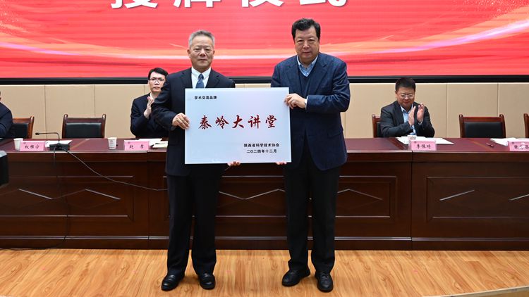 在熱烈的掌聲中,蔣莊德院士代表省科協(xié)為商洛學院“秦嶺大講堂”學術(shù)交流品牌授牌,張志昌代表學校接牌。