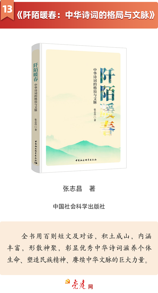 12月20日,中宣部“黨建網(wǎng)微平臺”發(fā)布了“黨建好書│2024年12月書單”,我校黨委書記張志昌教授著作《阡陌暖春:中華詩詞的格局與文脈》入選黨建好書推薦書單。