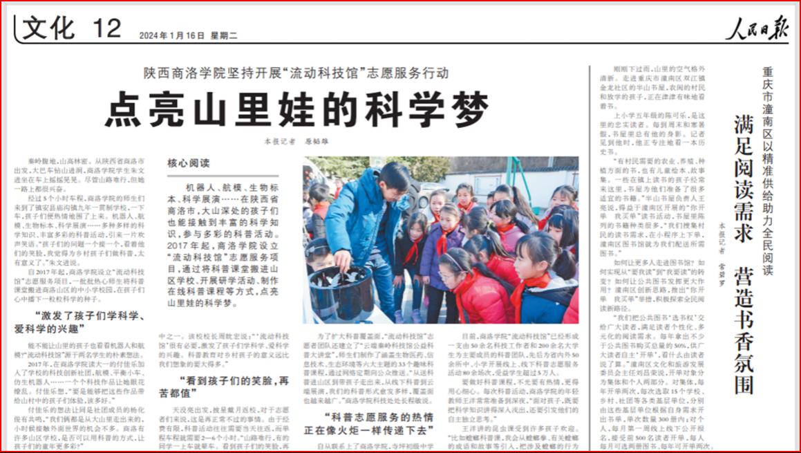 《人民日報》專題報道商洛學院“流動科技館”志愿服務工作