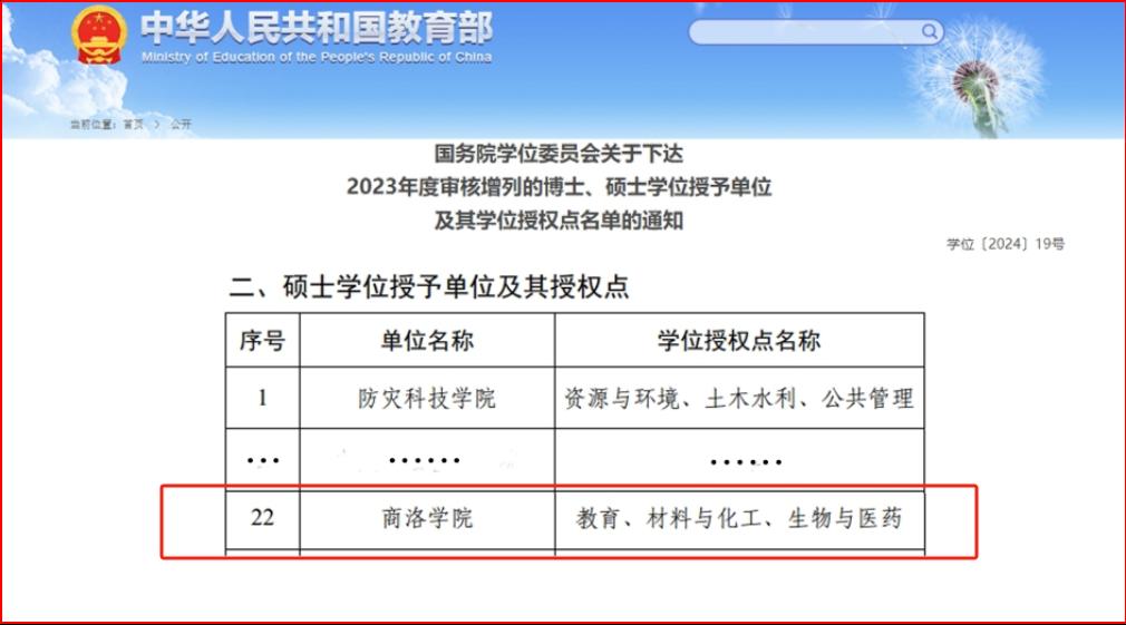 商洛學院獲批碩士學位授予單位