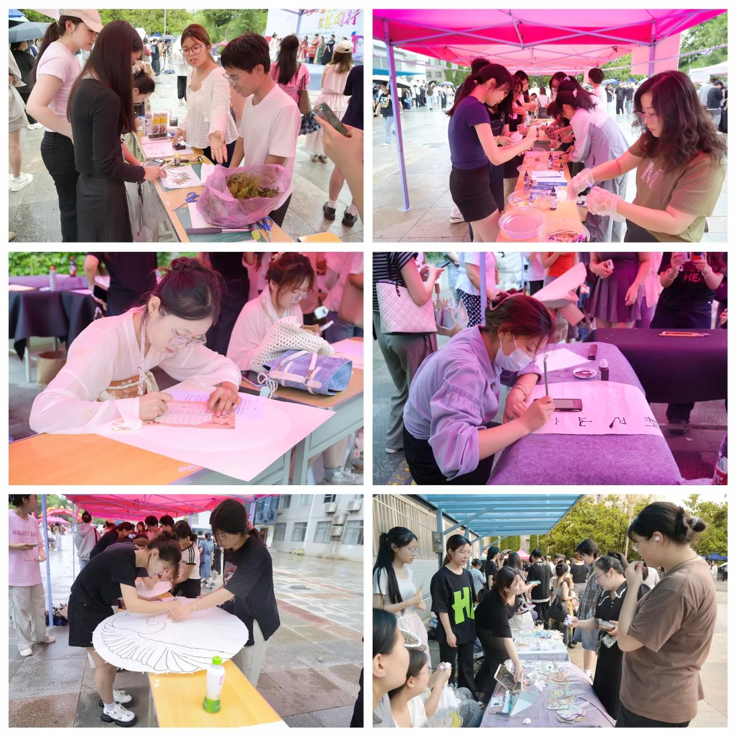 在游園活動(dòng)中,師生沉浸式參與“霓裳·重光”古裝造型賽、“詩(shī)海競(jìng)帆”詩(shī)詞擂臺(tái)賽、“筆競(jìng)風(fēng)華”書法擂臺(tái)賽、“指尖生花”創(chuàng)意彩繪、“藝展芳華”美育趣味體驗(yàn)、“藝心雅趣”文創(chuàng)市集、“鏡觀萬象”校園影像大賽、油畫寫生展、中國(guó)畫寫生展等體驗(yàn)項(xiàng)目,各種活動(dòng)奇妙交融,游園現(xiàn)場(chǎng)人潮如織、氣氛熱烈。