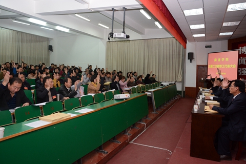 大會(huì)號召廣大教職工積極行動(dòng)起來,在校黨委的領(lǐng)導(dǎo)下,高舉中國特色社會(huì)主義偉大旗幟,全面貫徹落實(shí)黨的十八大精神和習(xí)近平總書記系列重要講話精神,進(jìn)一步解放思想,與時(shí)俱進(jìn),開拓創(chuàng)新,深化改革,扎實(shí)工作,為把我校建成一流應(yīng)用型本科院校而努力奮斗!