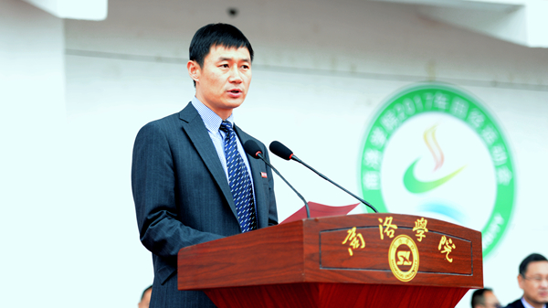 范新會(huì)在致辭中指出,發(fā)展體育、增強(qiáng)體質(zhì)是一個(gè)民族生命力旺盛的體現(xiàn),學(xué)校體育工作更是促進(jìn)學(xué)生全面發(fā)展,增強(qiáng)師生體質(zhì),推動(dòng)學(xué)校體育事業(yè)發(fā)展,豐富校園文化生活的重要行動(dòng)。一年來,我校認(rèn)真實(shí)施《普通高等學(xué)校體育課程指導(dǎo)綱要》,高度重視學(xué)校體育工作,學(xué)校積極組織開展各種形式的運(yùn)動(dòng)項(xiàng)目,獲得了多項(xiàng)榮譽(yù),學(xué)校體育工作也取得了長足進(jìn)步。他希望廣大師生積極參與學(xué)校開展的體育活動(dòng),也希望廣大參賽人員都能在奧林匹克運(yùn)動(dòng)精神的感召下,恪守“公開、公平、工正”的競賽準(zhǔn)則,賽出成績,賽出風(fēng)格,賽出友誼,爭取運(yùn)動(dòng)成績和精神文明的雙豐收。
