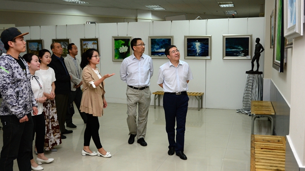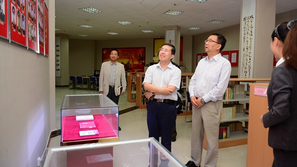 報告會結束后,在龍治剛的陪同下,任宗哲教授參觀了我校紅色文化資料館、商洛文化暨賈平凹研究中心和藝術展廳等處。