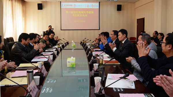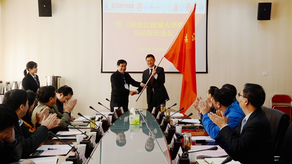 在書記校長論壇上,我校作為2018年漢江流域聯(lián)盟輪值理事長單位接受2017年漢江流域聯(lián)盟輪值理事長單位、南陽師范學(xué)院黨委書記黃榮杰授旗,副校長劉勇接旗;表決通過了湖北汽車工業(yè)學(xué)院作為2019年輪值理事長單位并成立新的秘書處,負(fù)責(zé)盟內(nèi)日常工作的開展。聯(lián)盟高校的書記校長以“深化合作,開拓創(chuàng)新,促進(jìn)漢江流域大學(xué)建設(shè)”為主題,圍繞“雙一流”建設(shè)與創(chuàng)新發(fā)展、應(yīng)用型人才培養(yǎng)與創(chuàng)新發(fā)展、師資隊伍建設(shè)與創(chuàng)新發(fā)展、高校治理體系法治化與創(chuàng)新發(fā)展、國際合作交流與創(chuàng)新發(fā)展、大學(xué)文化建設(shè)與創(chuàng)新發(fā)展、高校黨的建設(shè)與創(chuàng)新發(fā)展等議題分別作了主題發(fā)言。他們共同表示,聯(lián)盟高校要以黨的十九大精神為指導(dǎo),立足國家戰(zhàn)略和區(qū)域規(guī)劃,瞄準(zhǔn)區(qū)域經(jīng)濟(jì)社會發(fā)展需要,加強(qiáng)相互合作與發(fā)展,創(chuàng)新協(xié)同發(fā)展體制機(jī)制,實現(xiàn)優(yōu)勢互補(bǔ)、整體提升,開創(chuàng)互利合作共贏新局面。