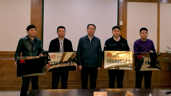 在大豐區(qū),龍治剛一行與區(qū)委常委、組織部部長蔡保生,副區(qū)長趙玉霞、蔣正治進(jìn)行了座談,在蔡保生等人陪同下,先后考察了豐山集團(tuán)、大豐港集裝箱碼頭、金風(fēng)科技公司、大豐高級(jí)中學(xué)、梅花灣和東方1號(hào)創(chuàng)意產(chǎn)業(yè)園等處。經(jīng)雙方友好協(xié)商,我校與大豐高級(jí)中學(xué)、新豐中學(xué)、南陽中學(xué)、第二中學(xué)4家學(xué)校聯(lián)合共建優(yōu)秀生源基地,與豐山集團(tuán)、輝豐股份、金風(fēng)科技、正大豐海等4家公司聯(lián)合共建大學(xué)生就業(yè)創(chuàng)業(yè)基地。彭虎軍代表學(xué)校分別與大豐區(qū)學(xué)校和企業(yè)簽署協(xié)議。龍治剛為8家合作單位授牌。