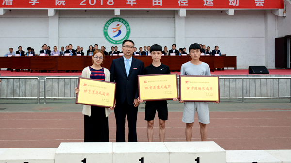 在熱烈的掌聲中,黨委書記龍治剛為團(tuán)體總分前三名、體育道德風(fēng)尚獎(jiǎng)獲獎(jiǎng)學(xué)院頒獎(jiǎng)。紀(jì)委書記王思懷、黨委副書記彭虎軍分別為男子總分前三名、女子總分前三名獲獎(jiǎng)學(xué)院頒獎(jiǎng)。
