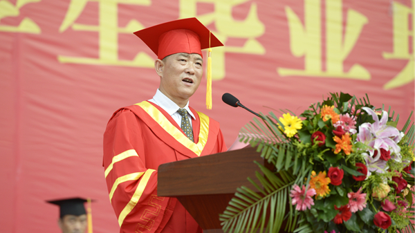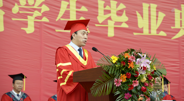 校長范新會(huì)以《不忘初心 砥礪奮進(jìn) 做新時(shí)代的奮斗者》為題發(fā)表了情真意切的講話。他深情地說,“母?!笔且粋€(gè)溫暖而幸福的字眼,是世界上最質(zhì)樸的一種情結(jié),是最為珍貴的人生記憶。過去的四年,學(xué)校事業(yè)蓬勃發(fā)展,蒸蒸日上。你們與學(xué)校共同成長、共同進(jìn)步,追求理想,砥礪前行,在這里磨礪了意志,增長了才干。你們用奮斗點(diǎn)亮了大學(xué)時(shí)光,為學(xué)校贏得了無數(shù)榮譽(yù),你們的拼搏精神和青春故事已經(jīng)深深地鐫刻在母校的記憶里!在這依依惜別的時(shí)刻,母校和老師對你們不舍再見,更為你們感到驕傲!