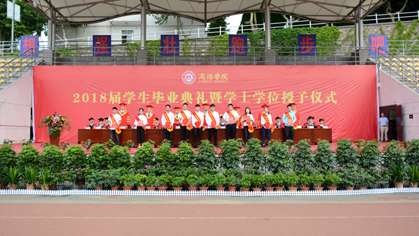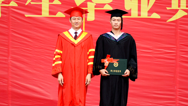 在學(xué)士學(xué)位授予儀式上,校長范新會(huì)、黨委副書記彭虎軍、副校長劉勇分別為獲得學(xué)士學(xué)位的畢業(yè)生正冠撥蘇、頒發(fā)學(xué)位證書,并與他們一 一合影留念。