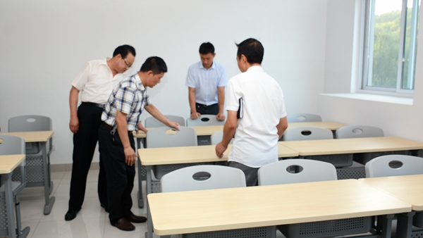 8月31日,校長(zhǎng)范新會(huì),副校長(zhǎng)魏書堂、劉勇在黨政辦公室、教務(wù)處、資產(chǎn)管理處、后勤保障處、信息中心負(fù)責(zé)人的陪同下深入學(xué)生宿舍、新建綜合大樓等場(chǎng)所,檢查開學(xué)準(zhǔn)備情況。