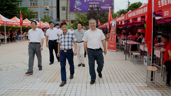 9月6日,陜西省政府學(xué)位委員會(huì)秘書長(zhǎng)袁寧一行來我校檢查指導(dǎo)工作。校長(zhǎng)范新會(huì)、副校長(zhǎng)魏書堂、黨委副書記彭虎軍、商洛市政府教育督導(dǎo)室主任白發(fā)善等人陪同檢查。