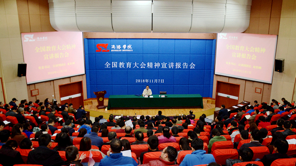 龍治剛強(qiáng)調(diào),要結(jié)合學(xué)校實(shí)際,扎實(shí)推進(jìn)全國教育大會精神在我校落地生根、開花結(jié)果,要把落實(shí)全國教育大會精神同學(xué)習(xí)黨的十八大以來習(xí)近平總書記關(guān)于教育的重要論述,特別是對陜西教育的重要講話、系列回信、賀信精神結(jié)合起來,進(jìn)一步提高政治站位,強(qiáng)化責(zé)任擔(dān)當(dāng),增強(qiáng)推進(jìn)我校教育改革發(fā)展的責(zé)任感、使命感和緊迫感,在堅(jiān)持社會主義辦學(xué)方向上落細(xì)落小、在立德樹人上落細(xì)落小、在構(gòu)筑高水平人才培養(yǎng)體系上落細(xì)落小、在“四個一流”建設(shè)上落細(xì)落小、在建設(shè)高水平教師隊(duì)伍上落細(xì)落小、在推動學(xué)校深化改革上落細(xì)落小、在服務(wù)經(jīng)濟(jì)社會發(fā)展上落細(xì)落小,以全國教育大會精神武裝頭腦、指導(dǎo)實(shí)踐、推動工作,以更加優(yōu)異的成績書寫商洛學(xué)院教育事業(yè)的“奮進(jìn)之筆”。