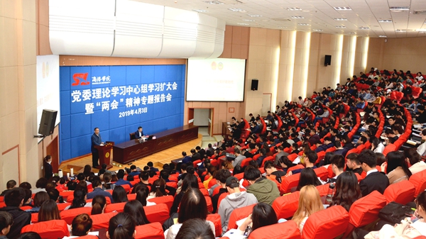 4月3日,我校召開黨委理論學(xué)習(xí)中心組學(xué)習(xí)擴(kuò)大會(huì),特邀第十三屆全國人大代表、西安工程大學(xué)校長、省委“代表委員講兩會(huì)”宣講團(tuán)成員高嶺教授來我校作2019年全國兩會(huì)精神專題報(bào)告。黨委理論學(xué)習(xí)中心組成員,各黨總支理論學(xué)習(xí)中心組成員,全??萍?jí)以上干部,副高職稱以上教師,馬克思主義學(xué)院全體教師,全體輔導(dǎo)員及學(xué)生代表420余人一道聆聽了報(bào)告。報(bào)告會(huì)由黨委書記龍治剛主持。