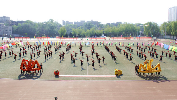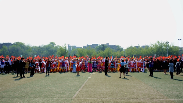 開幕式文體表演亮點(diǎn)頗多,精彩紛呈。我校航模隊(duì)與商洛市航空運(yùn)動(dòng)協(xié)會(huì)夢(mèng)想飛行表演隊(duì)的航模表演率先開場(chǎng),航模飛機(jī)在激昂的音樂聲中搏擊長(zhǎng)空,升降翻轉(zhuǎn),劃出一道道優(yōu)美的弧線。建工學(xué)院學(xué)生以紅扇跳勁舞,龍虎相隨,青春激情,以歡快的舞姿、動(dòng)感的隊(duì)形充分展現(xiàn)青春活力?;膶W(xué)院學(xué)生用熱情歡快的啦啦操和“1949”“70”的隊(duì)形,表達(dá)對(duì)祖國深深的熱愛與誠摯的祝福。數(shù)計(jì)學(xué)院學(xué)生以整齊優(yōu)雅的華爾茲雙人舞,展現(xiàn)學(xué)子儒雅優(yōu)秀的一面,用“SLXY"圖樣的隊(duì)形表達(dá)自己對(duì)學(xué)校美好明天的祝福。藝術(shù)學(xué)院學(xué)生身著藏族、傣族、蒙古族、佤族、維吾爾族,朝鮮族、苗族等多個(gè)民族服裝,結(jié)合現(xiàn)代舞蹈動(dòng)作,在愛我中華的樂曲中展現(xiàn)中華民族多元文化風(fēng)采和我校學(xué)子的勃勃生機(jī)。