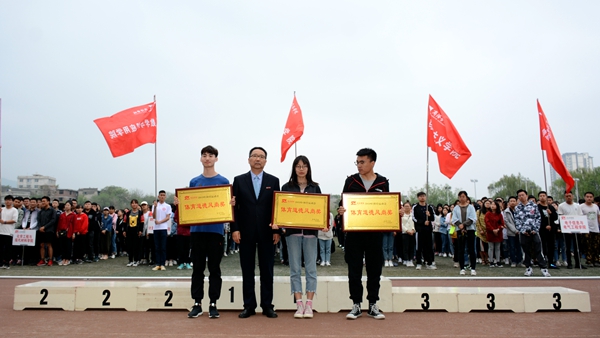 在熱烈的掌聲中,龍治剛為獲得體育道德風(fēng)尚獎的學(xué)院頒獎,范新會為團(tuán)體總分前三名獲獎學(xué)院頒獎,王思懷、劉寶盈分別為男子總分前三名與女子總分前三名獲獎學(xué)院頒獎。