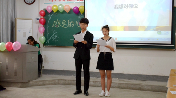 龍治剛向?qū)W生們分享了汪國真的詩歌《感謝》,回顧了自己的大學(xué)經(jīng)歷,他講到,“感恩”這個主題是我們新時代要倡導(dǎo)和弘揚(yáng)的正能量,此次班會的每個環(huán)節(jié)都體現(xiàn)了我們對優(yōu)秀傳統(tǒng)文化的傳承和發(fā)揚(yáng),我們要懂得感恩,感恩時代、感恩國家、感恩父母、感恩同學(xué),更要感謝每一次的成長和進(jìn)步。他就大學(xué)生如何有價值的度過四年求學(xué)時光提出了四條準(zhǔn)則:一年級走進(jìn)大學(xué)、認(rèn)識自我、鎖定目標(biāo);二年級適應(yīng)大學(xué)、發(fā)現(xiàn)自我、學(xué)會學(xué)習(xí);三年級理解大學(xué)、升華自我、全面發(fā)展;四年級眷戀大學(xué)、超越自我、服務(wù)社會。他希望學(xué)生們能利用好學(xué)校的師資平臺,在學(xué)習(xí)中勤思考、常研究,充分領(lǐng)略科學(xué)知識的魅力,以實(shí)際行動向自己、家人、學(xué)校、國家交上一份滿意的答卷,用滿滿收獲回饋關(guān)愛自己的朋友和師長。