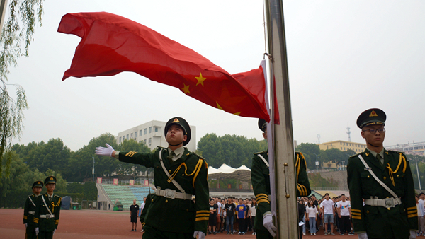在雄壯的國歌聲中,建工學(xué)院師生整齊列隊(duì),舉行新學(xué)期第一次升國旗儀式,學(xué)生代表李斌以《新學(xué)期,新開始,新征程》為題作國旗下演講。