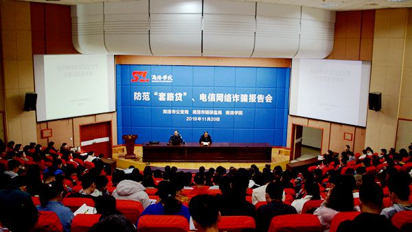 為貫徹落實陜西省公安廳、教育廳《關(guān)于開展“百城千?!奔行麄骰顒拥耐ㄖ肺募?,進(jìn)一步提高我校廣大學(xué)生防范“套路貸”、電信網(wǎng)絡(luò)詐騙的意識和能力,保障廣大師生的財產(chǎn)安全,11月20日,我校聯(lián)合商洛市公安局、市銀保監(jiān)局開展防范“套路貸”、電信網(wǎng)絡(luò)詐騙集中宣傳活動,向廣大師生發(fā)放各類防范詐騙資料2000余份,并舉辦了防范“套路貸”、電信網(wǎng)絡(luò)詐騙報告會。保衛(wèi)處、學(xué)生處相關(guān)工作人員,全體輔導(dǎo)員,學(xué)生安全信息員共計400余人聆聽了報告。