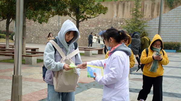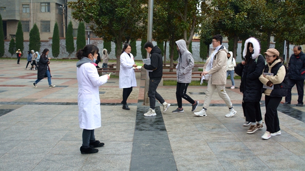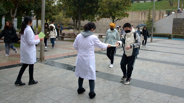 12月1日是第32個(gè)“世界艾滋病日”,今年的宣傳主題是“社區(qū)動(dòng)員同防艾,健康中國我行動(dòng)”。11月29日,在第32個(gè)“世界艾滋病日”來臨之際,我校醫(yī)務(wù)室聯(lián)合校志愿者協(xié)會(huì)舉行艾滋病防控宣傳活動(dòng)?;顒?dòng)中,我校醫(yī)務(wù)室工作人員為師生宣傳普及艾滋病防控的基本知識(shí)并發(fā)放宣傳彩頁3000余份、防艾健康教育處方1000余份、宣傳海報(bào)300余張。
