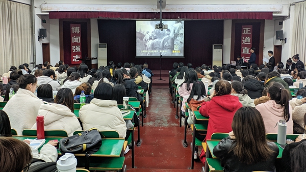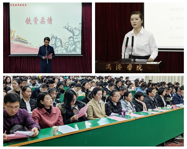 為深入學(xué)習(xí)貫徹習(xí)近平新時代中國特色社會主義思想和黨的十九屆四中全會精神,將“不忘初心、牢記使命”主題教育核心內(nèi)容在師生中入心、入腦,12月5日,馬克思主義學(xué)院黨總支舉辦了“不忘初心、牢記使命”紅色家書誦讀會。宣傳部相關(guān)負(fù)責(zé)同志、馬克思主義學(xué)院教師黨員和全體在校生參加了活動。