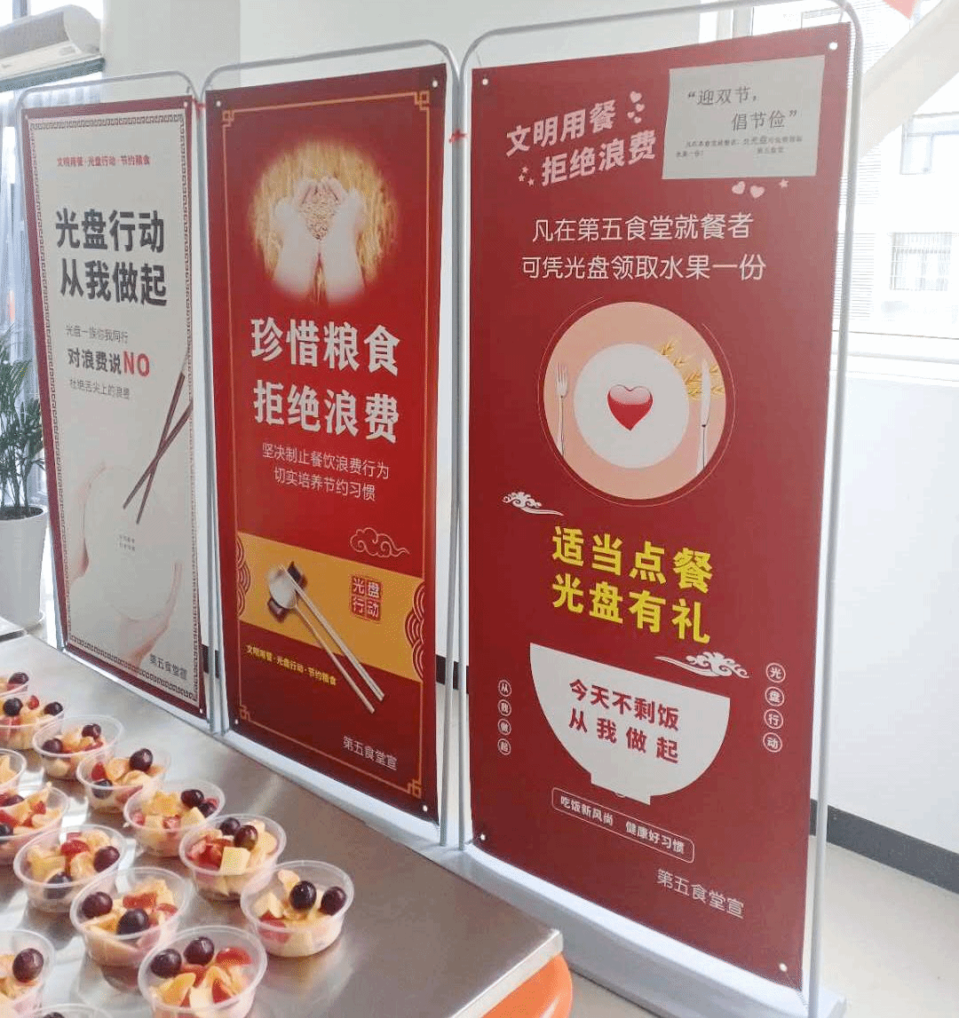 ——在全校食堂持續(xù)開展“光盤行動”。各食堂陸續(xù)通過光盤換水果、換飲料、換小飾品的活動,積極引導(dǎo)師生按需點(diǎn)餐、避免浪費(fèi),不剩飯、不剩菜,節(jié)約糧食、珍惜糧食,并以此為抓手扭轉(zhuǎn)餐飲浪費(fèi)的不良風(fēng)氣,引導(dǎo)師生關(guān)注參與餐飲節(jié)約,推動“光盤行動”常態(tài)化。